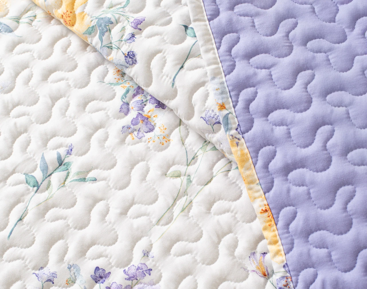 Bring spring style and comfort to bed with our Clara Coverlet Set. This bright design features sprouting yellow and violet florals over a solid white surface. This coverlet set also comes with coordinating pillow sham(s) for a matching look, and is finished with a solid lilac purple backing for fully reversible style. Perfect as an extra layer or blanket, this coverlet set is a cozy addition to any bedroom.