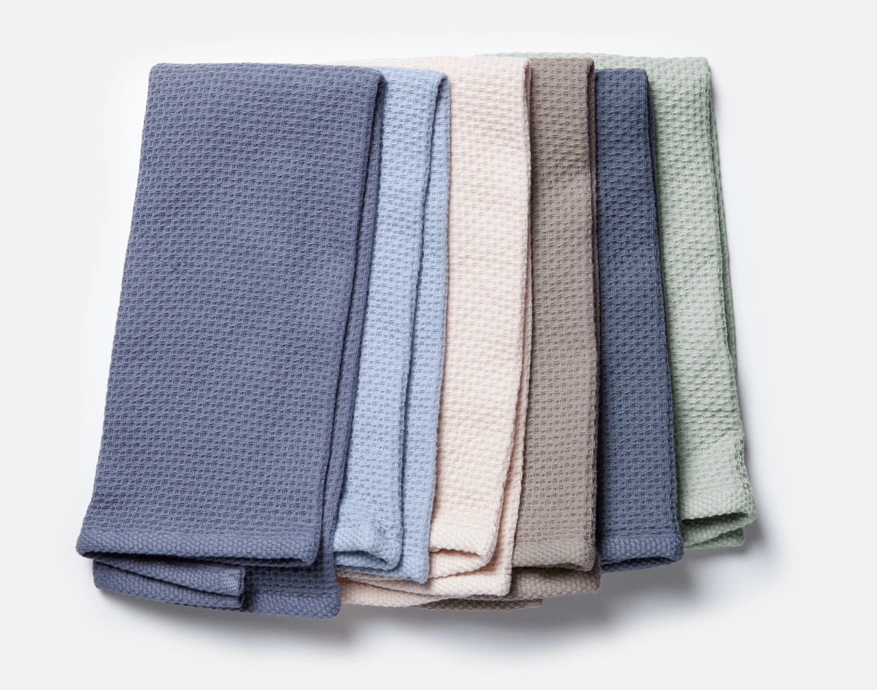 Cozy up your kitchen with our Cotton Knit Tea Towel Set! This pair of towels brings a tactile charm to your table décor, with two coordinating towels in solid pale navy and light teal shades, each crafted with an elegantly woven knit cotton surface. Machine washable and dryable for easy care, these tea towels are a must-have for anyone hosting friends or family.