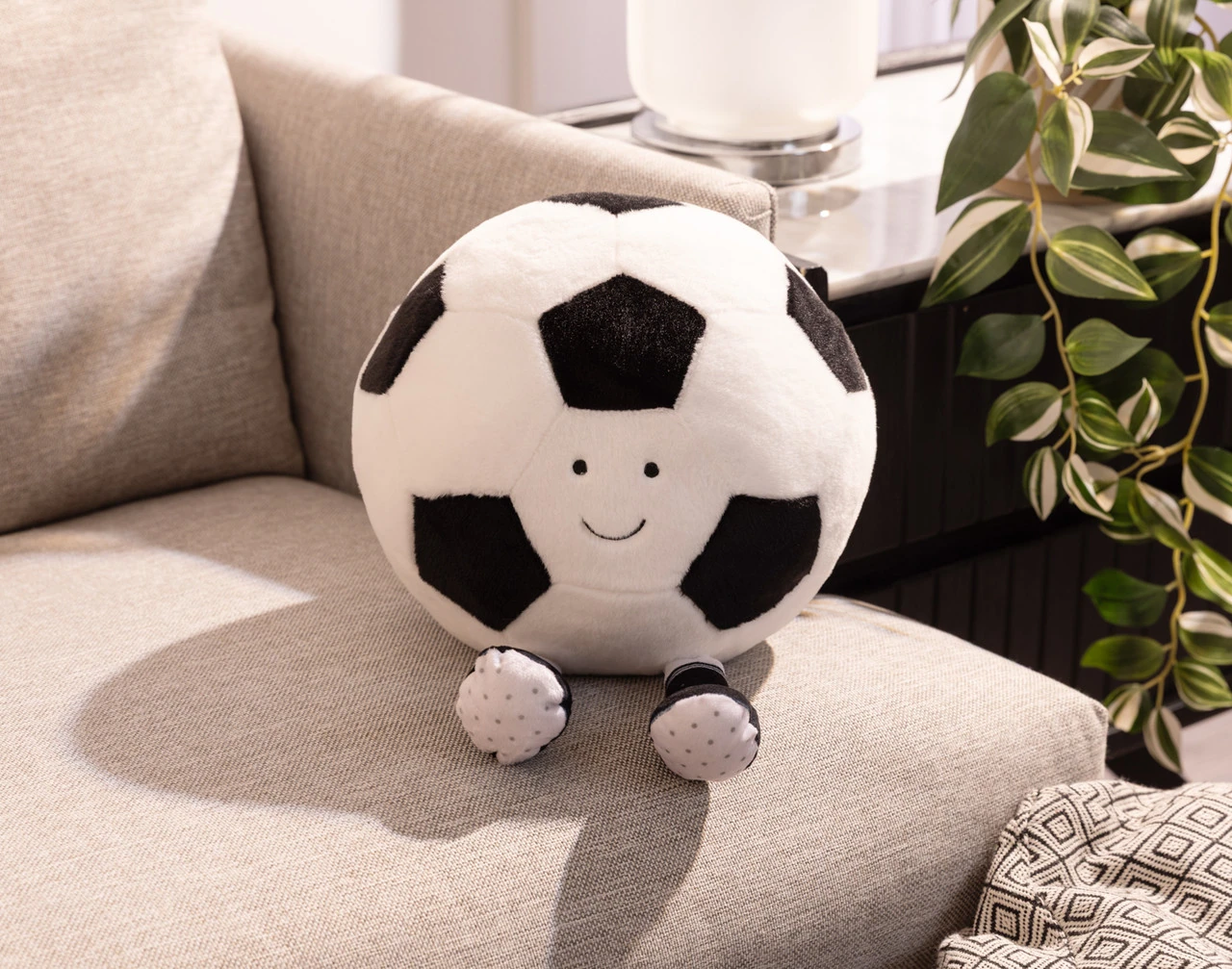 Find your new cuddle buddy for the World Cup with our Footy Soccer Ball Cushion. With an adorable soccer ball shape, sneakered feet, and a smiley face, Footy is crafted and filled with soft polyester fibers. Lightweight and cuddle-friendly, this accessory is perfect for anyone looking to add a bit of fun sporty style to their decor.