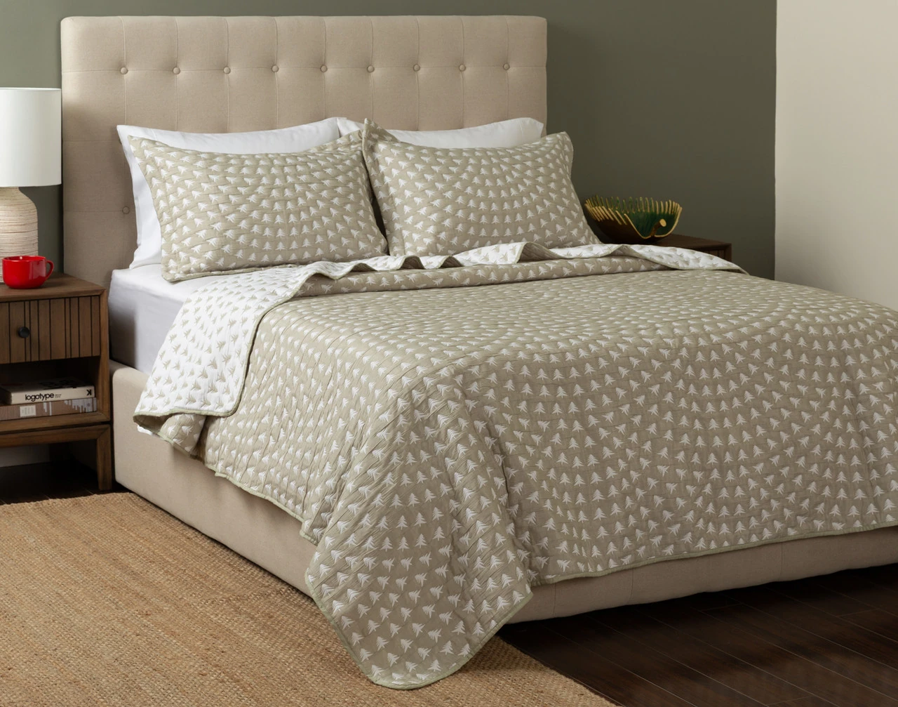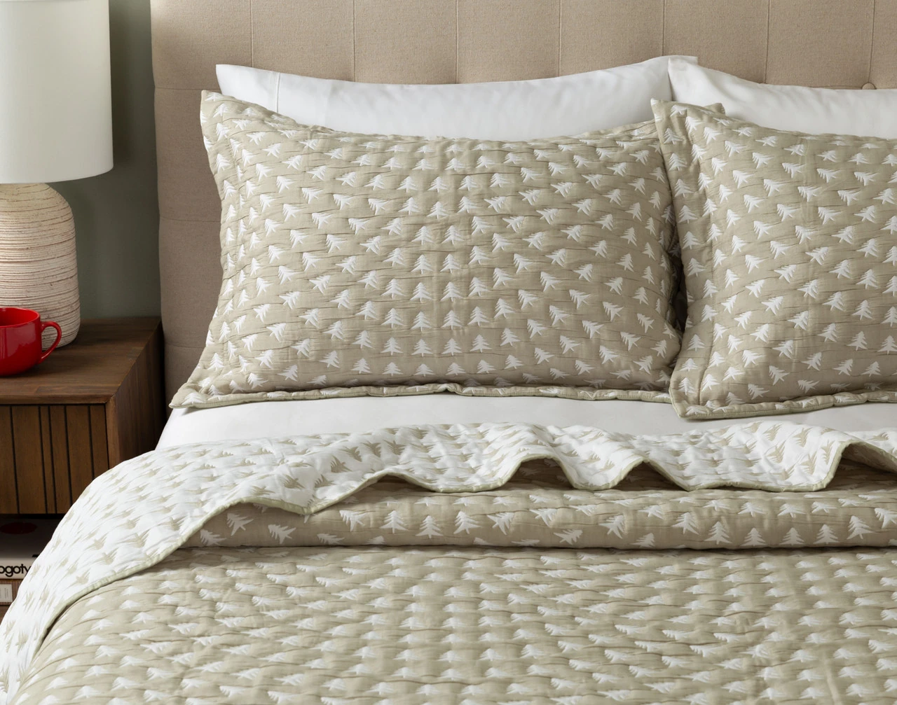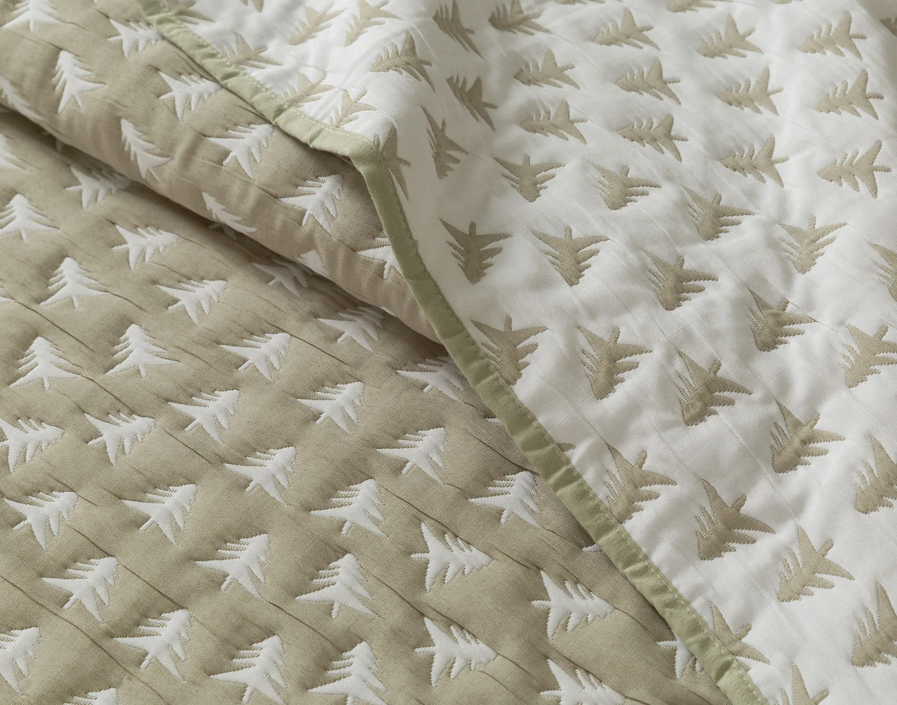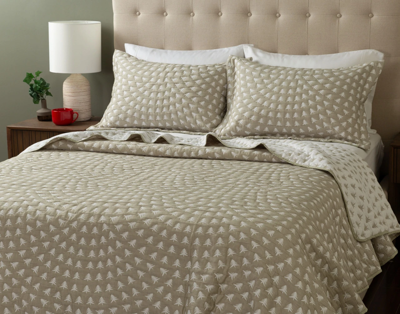Get in touch with nature under our Forest Frost Coverlet Set. This winter-friendly layer features snowy white evergreen trees etched across its elm green surface, giving your bed a natural touch with eye-catching texture. The set also comes with coordinating pillow sham(s), and is backed to an elegantly inverted design for fully reversible style. Perfect as an extra layer or blanket, this coverlet is a cozy dream come true for winter sleepers of all styles.