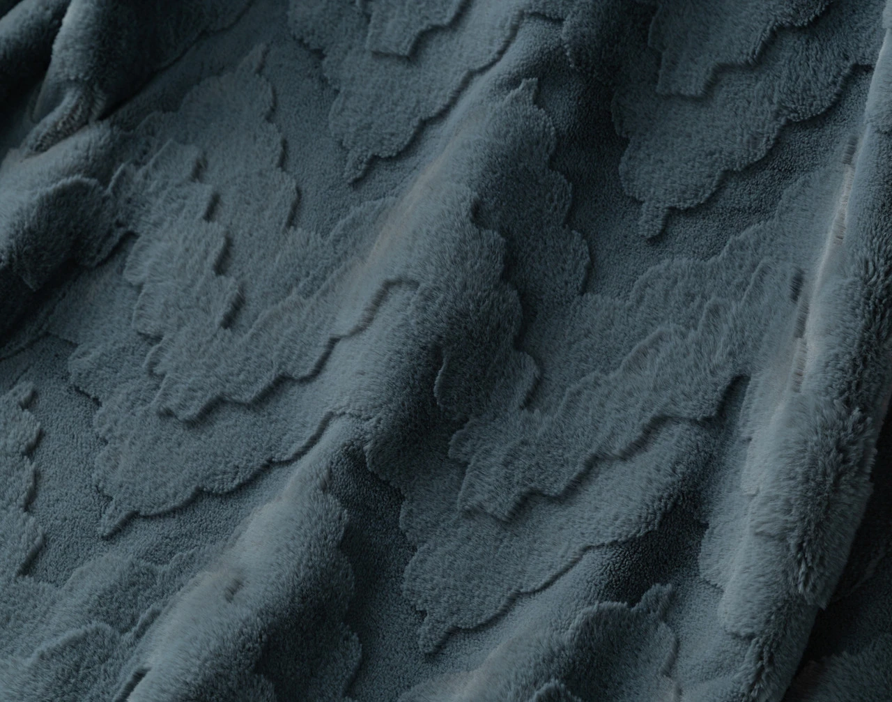 Cozy up in textured delight with our Teal Haze Geo Etched Throw. This extra-soft throw features a jacquard fur surface with etched chevron stripes in a blueish green colour, and is backed with a lustrously smooth plush velvet reverse. Wonderfully warm and insulating, this throw is a dream for your winter décor, providing indulgent tactile comfort and a subtle textural touch.