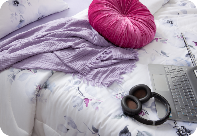 Amp up your dorm decor style by adding textured layers like throws, quilts, and blankets. These cozy essentials will keep you comfortable while hitting the books, plus they’re the perfect companion for late-night lounging with floormates.
