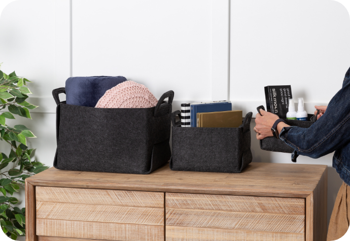 Living in tight quarters? Save space and store your possessions in style with ultra-functional home decor items like our Collapsible Felt Basket. These sturdy, multipurpose organizers are made from resilient brushed felt and stow away like a dream when not in use.