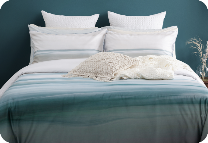 Our BeechBliss Sheets in Waterfall.