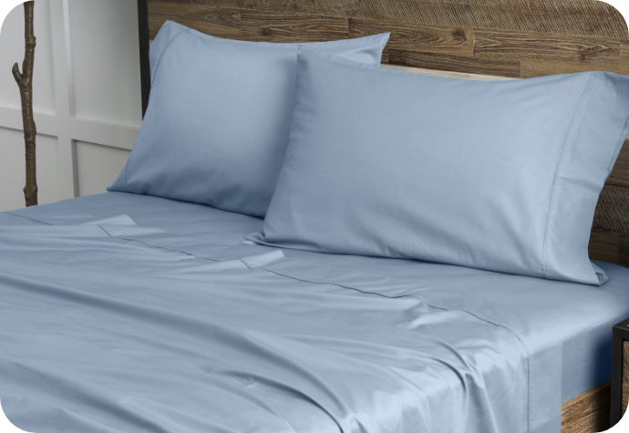 Our Bamboo Cotton Sheet Set in Mistral Blue.