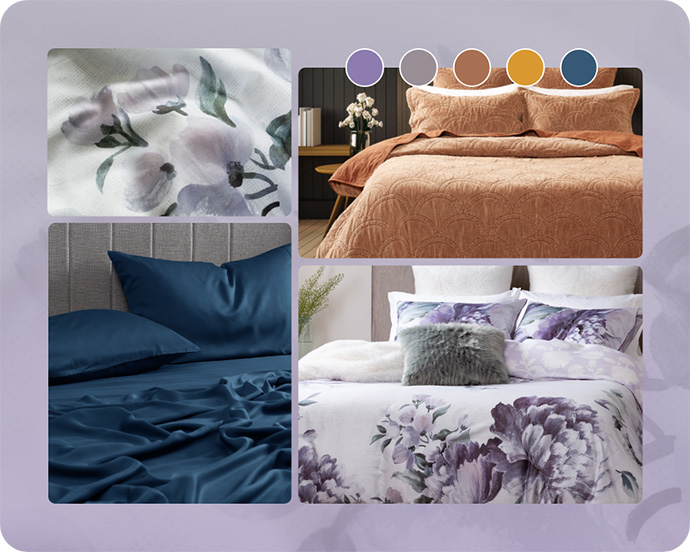 To incorporate trending colours into your bedroom, try an accent rug and matching wall decor to bring warmth and intrigue to your space. Or make the accent piece your bedspread itself, and refresh your bedding colour scheme.