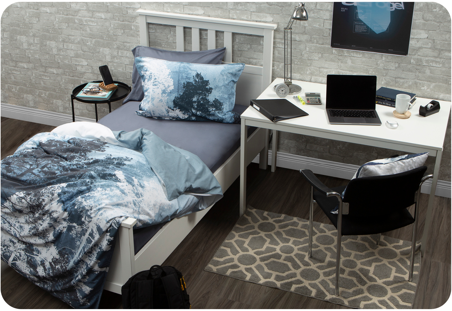 □ Floor rugs can help to warm up a space and add a little touch of comfort for those long night study sessions. A simple, grayscale geometric print can add visual interest to your room while preserving a pared-back aesthetic.